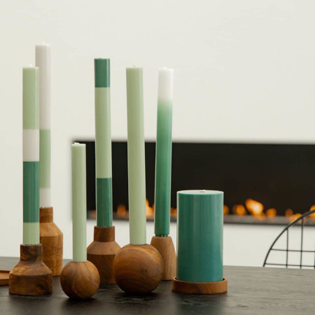 Escolha curvas elegantes para destacar suas velas com o Castiçal Esfera! Feito à mão com madeira de raiz de teca reaproveitada, este castiçal transforma resíduos em uma peça de decoração única que complementa qualquer composição de mesa. Combine-o com velas longas ou de jantar para criar uma atmosfera sofisticada.